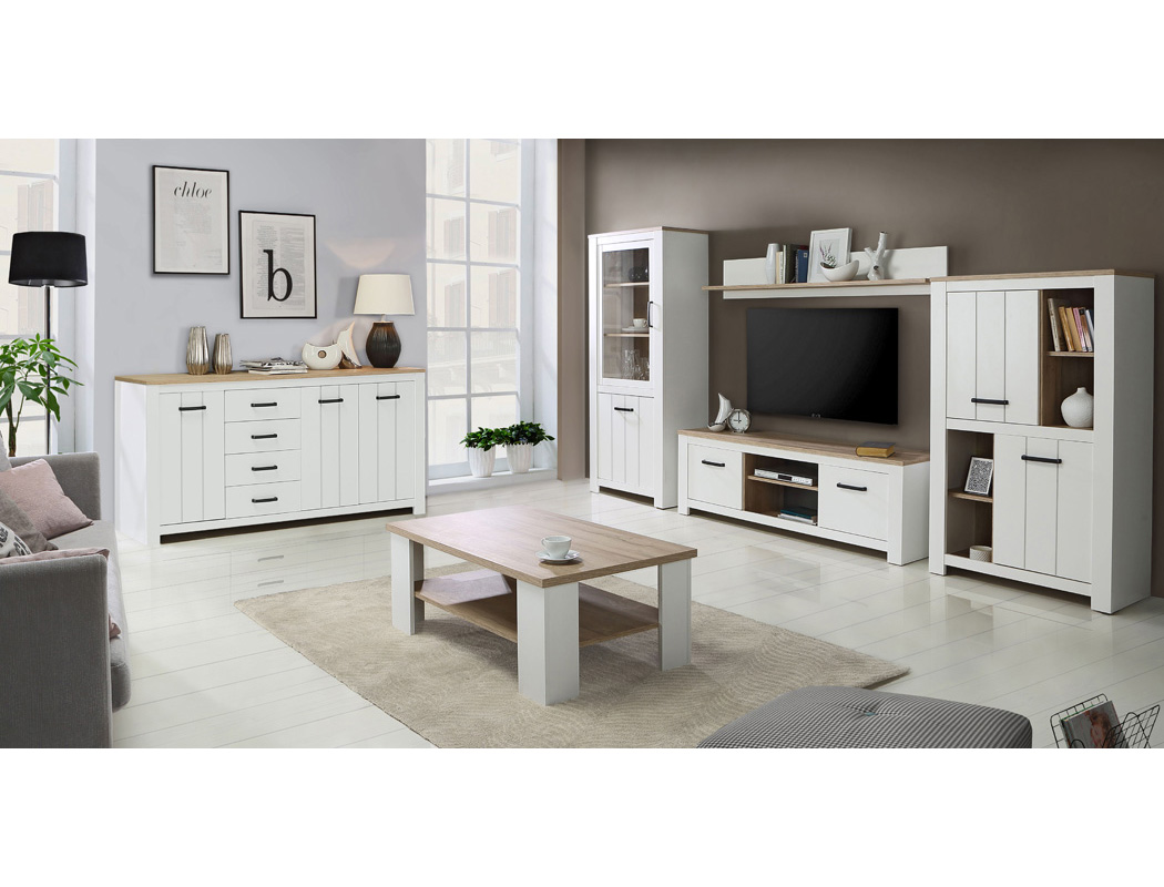 Wohnzimmer Pisa 55 Eiche bianco massiv 4-teilig Wohnwand ...
