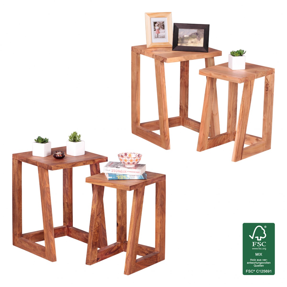 Beistelltisch Akazie Massivholz 2er Set Wohnzimmertis