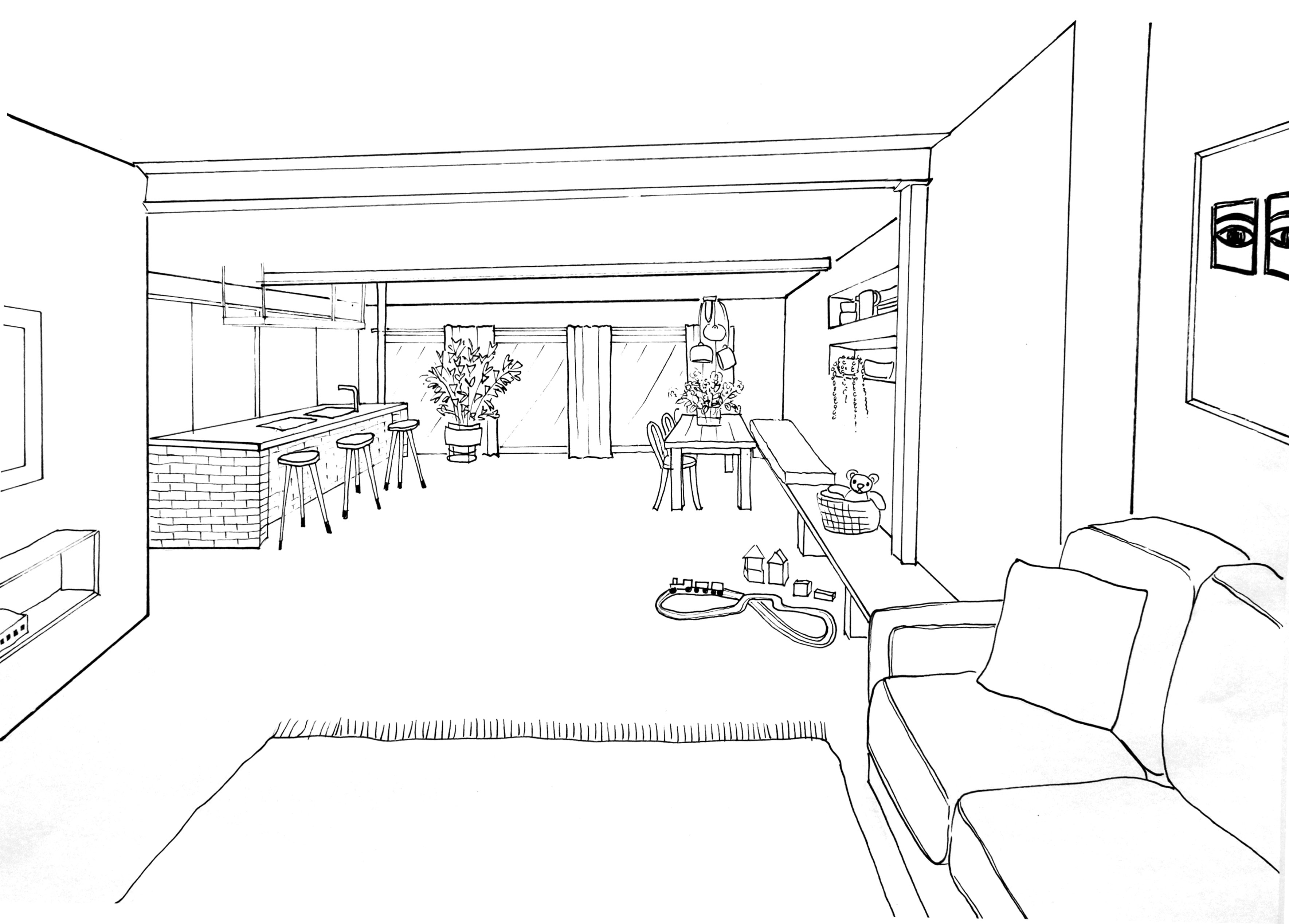 Freehand Perspective Architectural Drawing Living ...