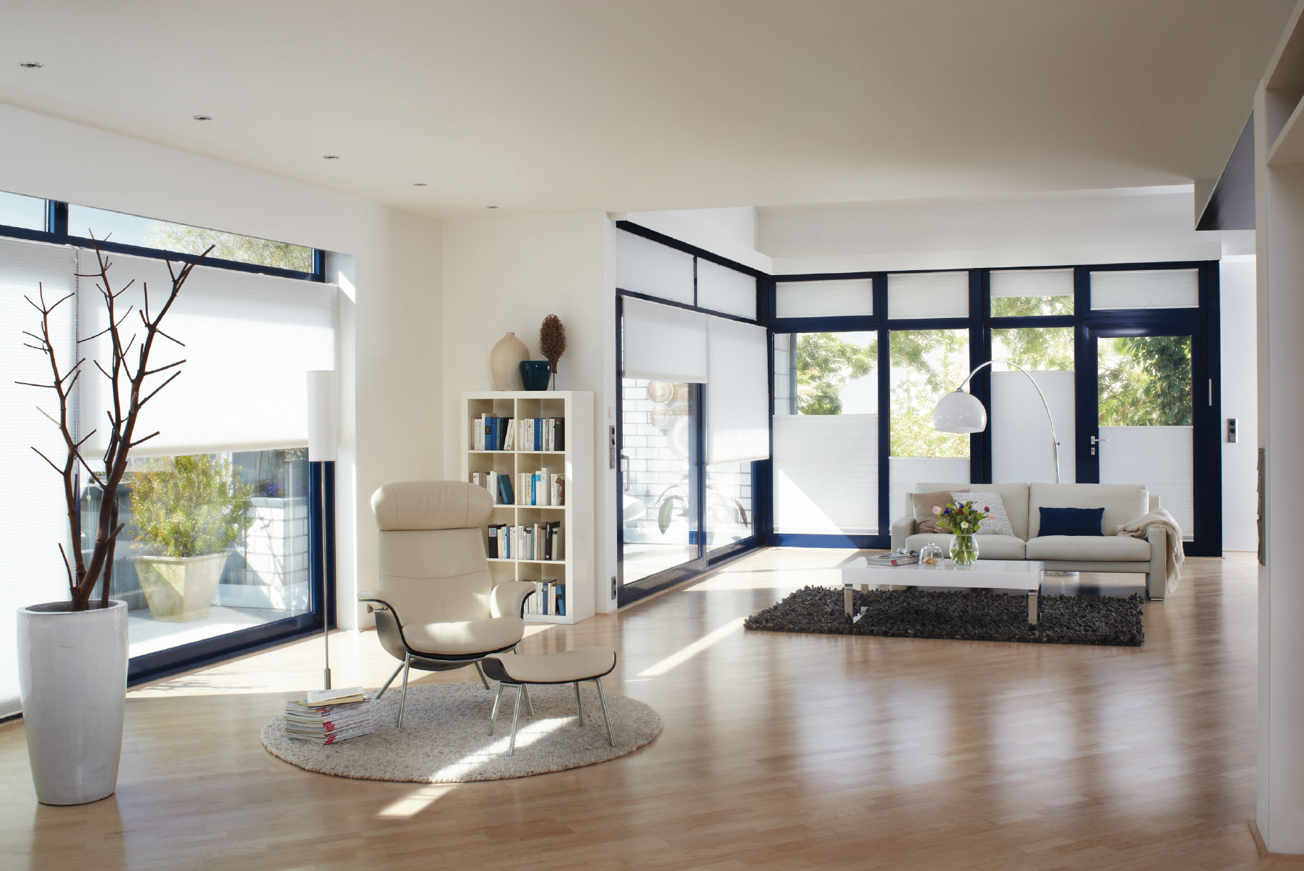 Sichtschutz im Wohnzimmer - moderne Plissees, Gardinen und ...