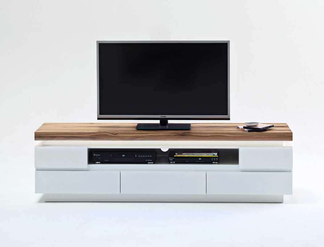 TV Lowboard in Weiß mit Eiche Massivholz | Wohnzimmer > TV ...